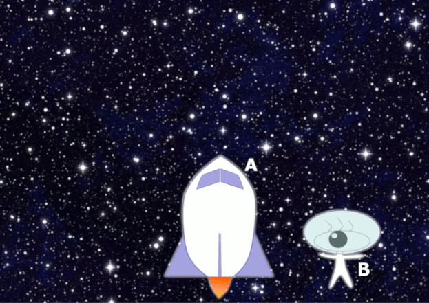 さてここで、Aさんの乗った静止しているロケットに左右から光が当たっているシーンを考えてみよう。