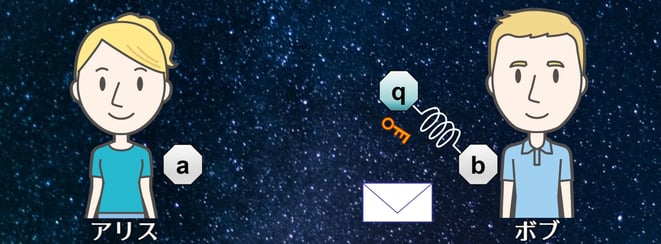 それからアリスがボブに、測定結果の暗号キーを送る。