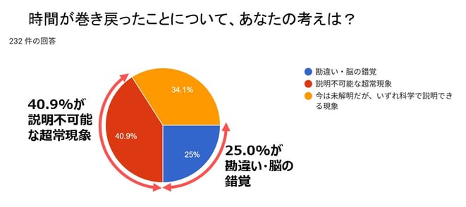 Q2の回答からも日中にタイムリープを体験している人が多いので、「夢の中だけの現象では説明できまない」ことがわかる。