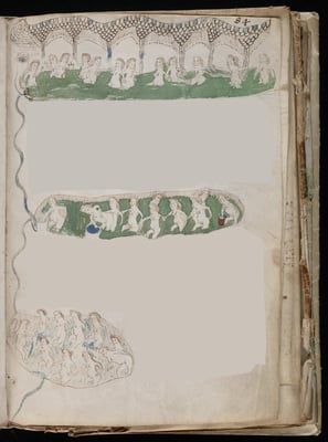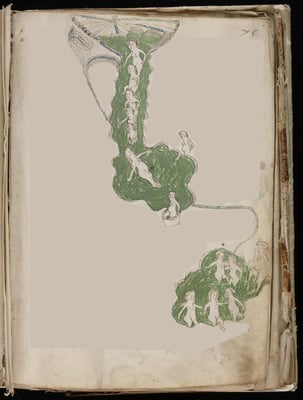 「ヴォイニッチ手稿」とは、15世紀から16世紀ごろに書かれたとされる古文書で、最大の特徴は、未解読の文字と、この世界には存在しない植物や、謎の裸の女性たちの絵が、240ページにわたって書かれていることだ。